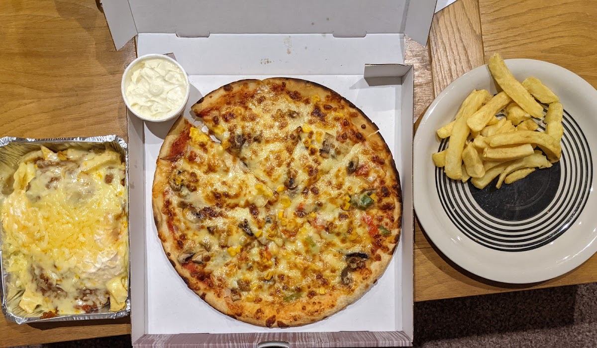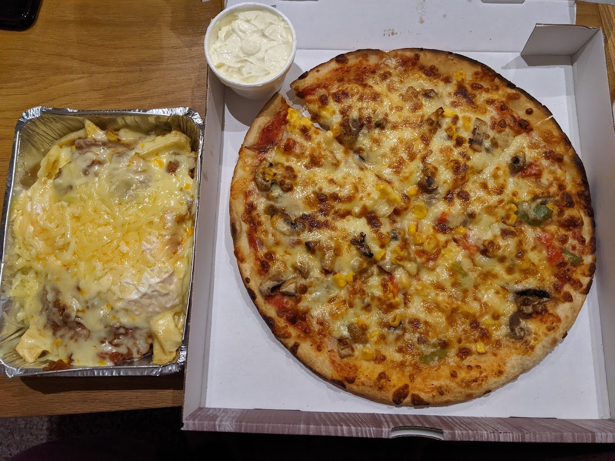 The restaurant doesn’t just stop at pizza. The Taco Chips & Cheese is another crowd-pleaser, offering a combination of crispy chips loaded with melted cheese, perfect for a snack or appetizer. And for something truly comforting, the Sausage Supper, served with peas or curry, is a nostalgic favorite that brings warmth and flavor to every bite.